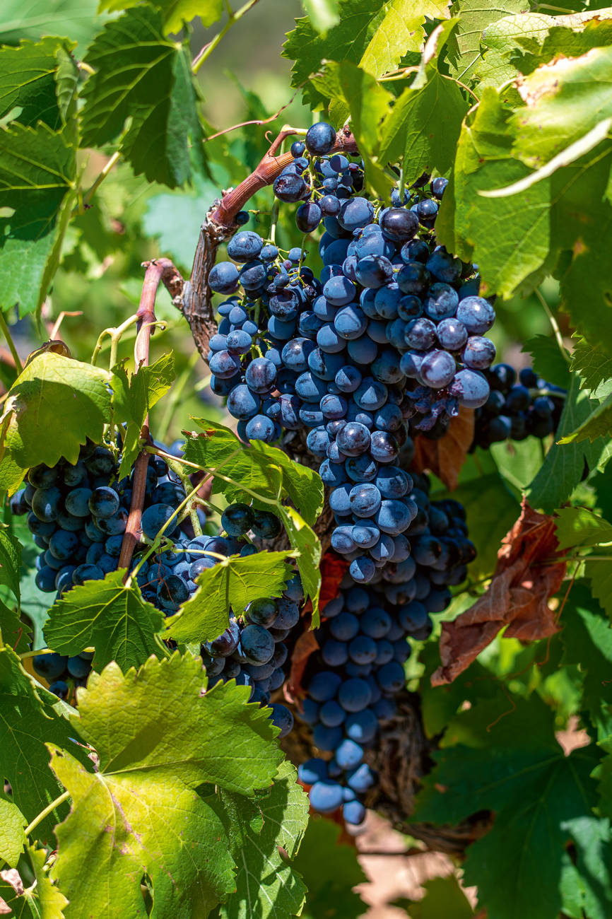 Vorwiegend werden die für die Gegend typischen Sorten Grenache, Sirah, Cinsault, Mourvèdre und seit kurzem Vermentino angebaut.